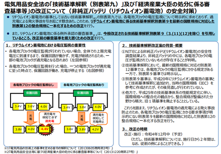 On November 4, 2022, METI, the Ministry of Economy, Trade and Industry of Japan, released a collection of comments on the revision of technical standards and regulations for lithium batteries on its official website. The deadline is December 3, 2022. Revision content: Since Table 9 does not specify the method for monitoring the voltage of each cell/cell block in the battery pack, it is recommended to abolish Table 9 and unify it to J62133-2 in Table 12 that matches the latest international standard.